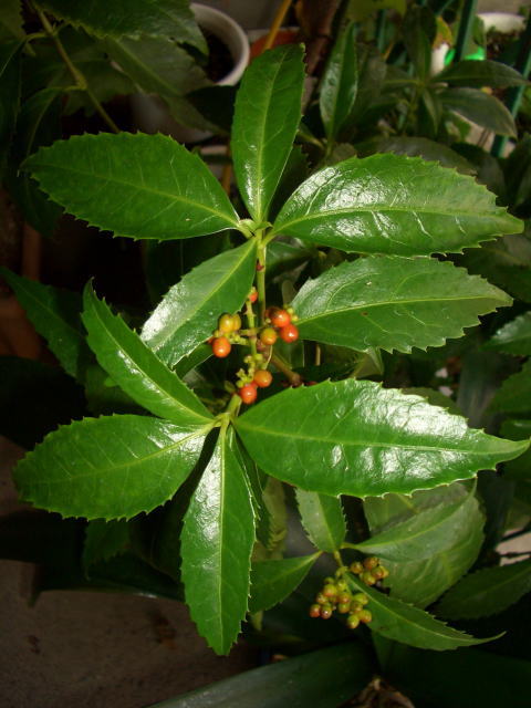 という事で今日はミニトマトの実全てを収穫。ほぼ全て青いまま。若干まだ木で熟させたい気持ちもありつつ、霜でパーになるよりゃマシだという事で。 で、只今絶賛追熟中なんですが。 量が半端じゃありません。本当に全部追熟出来たらトマト祭りが開催出来そうな感じ。 ああでも、これだけあの木は頑張っていたんだな~と思うとしみじみ。ちょっとうどんこ病ですが今も元気、特に今年は根が健全なようで未だに用土がふかふかです。花もまだ咲いています。空気読めていません(>_<) (笑) あと、デンドロビウムと君子蘭、フィロデンドロン・セロームはたっぷり給水後宅内へ。まだ軒下なら大丈夫かな~と思いつつ、いつガッと冷えるか解らない=急に取り込むのは面倒臭いので。ユリは茎がすっかり枯れたので切り取りました。イチゴはもう近々植え替えをしなければなりませんねぇ~…。 冬が来る前にもう一頑張りです。 PR ウチのミニトマト。健在です。 がっ! ここへ来て、うどんこ病が発生しとります。困った! 対処法は解ってますし、薬剤もあります。しかし、もう半月もすれば霜でダメになってしまう(涙)であろうこの植物に、今更農薬散布するのもどうかと。今まで頑張って無農薬で育てて来たのに。あっ、もちろん緩効性農薬は使いませんよ~(^-^)意味ないもん。 ただ、これで株が弱って来ているってェのは判りました。秋だもんねぇ。 今日はプランターの片付けなんぞを致しました。ムカデとカマドウマとゲジゲジに遭いました。ムカデは刺すので速効捕殺。10cm位だったら戦えます。カマドウマはそのままポイ。ゲジゲジは無視。 で、洗い終わったプランターへは今月中~来月頭くらいにイチゴを植え替えする予定でおります。終わったら今年の園芸作業はだいたい終わりかな? そして信州は長く厳しい冬に突入です。あーヤダ。 自然はもっともっと敏感で、ちょっと前までうっすら黄色かっただけのハナミズキの葉が全体的に赤く色づいてきました。 本格的に秋到来ってトコでしょうか。 …この後葉が散ると、掃除が大変な事は今は考えない事にする(^-^;) 出来ればヤキイモ出来る位になってくれたらとも思いつつ、野焼きはあきまへんな~。場所がないし。 因みにコレ、ヤキモキはしましたが、特別なにもしてません。水やりをきちっとした程度。これ以上手入れすると枯れます、たぶん。 そんな感じで深まりゆく秋を感じております。 …でも、相変わらずミニトマトの収穫は続いています。霜降までガンバレ~。 …割とまめに手入れしてたつもりだったんですが。 知らない間に君子蘭が増殖しかけてました、っつーか増殖中でした(汗) エー、ヤダ、ウッソー! 実は近日中にも一回り大きな鉢に植え替えしようと思っていたんです。根が地上に出始めているので。う~む…こういう場合、下手に植え替えない方がいいんだろうか?親株が余計弱ってしまうような? しかし鉢2つにすると…スペース取って大変だ。 っつーか、種から育てた君子蘭の子どもがすくすく3株育っておりまして、こちらも植え替え必至な状態です。どーすんのよ~! え~、その他、デンドロビウムも絶好調でして、株分けしてすっきりしたはずなんですが既に3鉢とも鉢底から根っこが出ています。シクラメンは早くも葉がぼーぼー。千両もしっかり実が付いています。シンビジウムは放置してますが、特段変化無し。 この辺は冬場宅内に取り込まなきゃならない物ばかりです。 早い所冬場の安住の場所を作らねば。 「大きくなれよ」
