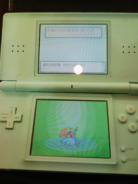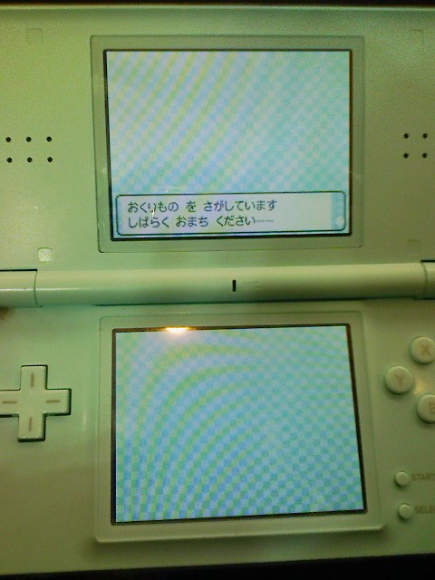 おとなしく買った方がいいんでしょーか?なんかそんな気がしてきた…。おとなしく買った暁には、ついでなので前のPCのモニタとも引き取ってもらおうかしら。 …って!配信装置の電源入ってないじゃん!! (←先方の電源入っていないの図) という事で大きいお友達、店員さんに「すいませ~ん、電源入ってないと思うんですけど~」とお願いし、頂いてきました~。 店員さんがあたふたしている間に、ちびっ子がやって来て一緒に配信待ち。近くに親御さんもいるし、何となく話し掛けやすそうな子だったんで何かポケモンについてお話ししようかすっごく迷いました。(結局話しませんでしたが) で! よっしゃー、これで…………… … 道のり長いんだよな~(T.T) ポケモンやってる時間がな~い。 東国原宮崎県知事のメガネの位置が気になる今日この頃(外してもいいんじゃなかろうか…?)