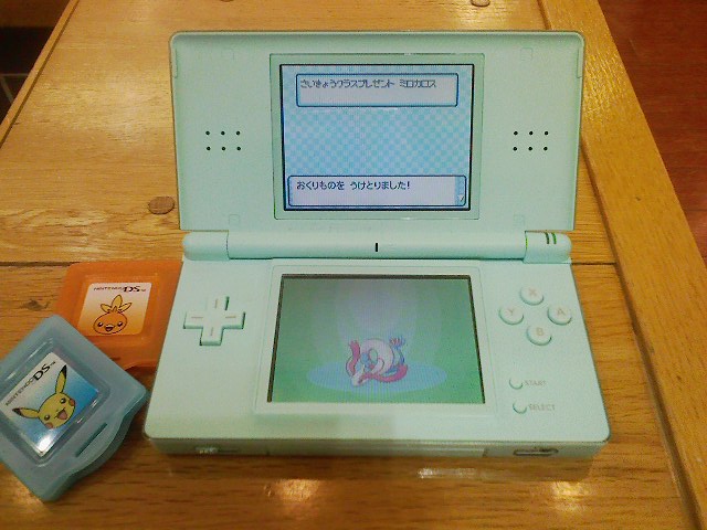 …普段通りでおっけ~♪( ̄▽ ̄)これ以上何をどうしようと?ないものはな~い! そんなこんなでミロカロス。え~ん、やっともらってきました~。 で、大きいお友達はまんまとポケモン商法に乗っけられちゃったりするんだわ~。 …あ、やべ、まだだいすきクラブのすごろく終わってないや(汗)早くやんなくちゃ! 最近初音ミクとか鏡音リン・レンB.G.M.にネット徘徊してるものだから、別窓でうっさいFLASHすごろく進められないのよね~。 因みに鏡音リン・レンでツボったのはドナドナ。最初聴いた時笑い死ぬかと思った。初音ミクはいろいろあるけど、最近では大地讃頌。(「人の!コラ!」て…) 深夜無音状態のトコでひとり笑ってるのは不気味だろ~なぁ~。 …インナーイヤーヘッドフォン使っているから客観的に見るとこんななります。 しかもやってる事が…………… …バカでしょ?ぶははははははははは!
