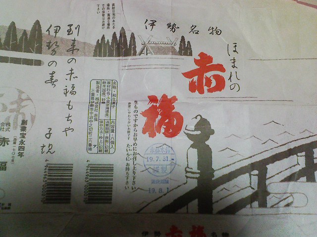 で。「赤福」。 そう言えば確か今夏頂いた憶えがあったのと、自分でも買った憶えがあったので包み紙を探してみましたところ、ありました! あっ、おなかが痛いかも( ̄▽ ̄) 金返せー! ンなワケで、分別収集も時に違った意味で結果的におもろい事になるみたいです。 因みにコレ、職場の後輩から頂いたもの。明日持って行って話題にしたいよーな気がするものの、角が立ったらヤーです。悩むなぁ。多分持って行かないな…。 時々とても頭が痛くなります。偏頭痛持ちではないと思っているのですが、偏頭痛という事になっていてお薬を処方して頂いております。そのお薬は「レルパックス」といいます。効くんだけど薬価が高いっす(>_<)