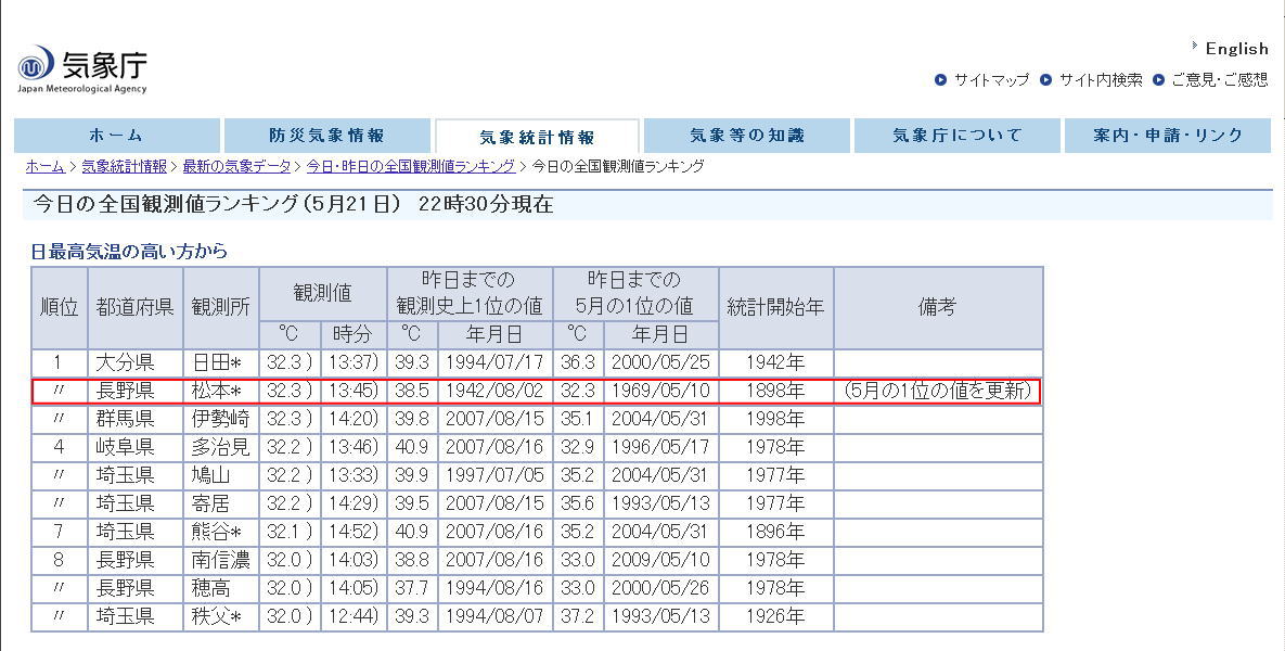 そこからビンラディン氏のページに行って…………中東情勢とかイスラム教の話満載で、挫折して帰ってきましたλ…λλ…λ…λλλ… 週刊こどもニュース見て、解った気がしてたんですが…どーも頭に入っていかないっ(>_<)思えばわたし、世界史全然ダメで…人名と地名、国名等の区別が付かない物はダメみたいです。区別が付けば大丈夫なのかというと…大丈夫なんです(笑)日本史はそこそこ行けました。 これじゃグローバルな視点にならないよな~、とは思いつつ、ダメなモンはダメなりに頑張ればいっかぁ、とか思ったりして。英語力も必要になってきてるけど、母国語である日本語も大事にしたいというか、日本語すら覚束ないようでは…ねぇ。 それはともかく…一応困らない程度には憶えたいです(;ω人) ……… 寒いのもヤダけど、あっついのも勘弁。 五月晴れで過ごしやすい~ってのはどこ行っちゃったんでしょう…。 各地で30度以上の真夏日 NHKニュースで紹介される松本市内の様子ですが…ここってウチから徒歩3~5分ですf(^-^;)うーん…涼を求めて…行くまでにバテそう(笑) 宗教は人それぞれなので論議する気は全く無く、またどこかに入信しようって気も全くありません。と前置き。