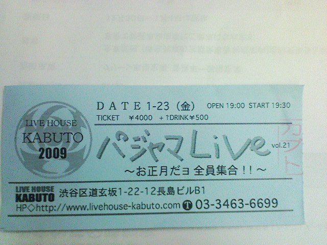 チケットで~す今年一発目のLIVEに行ってきました。face to ace パジャマLIVE。
